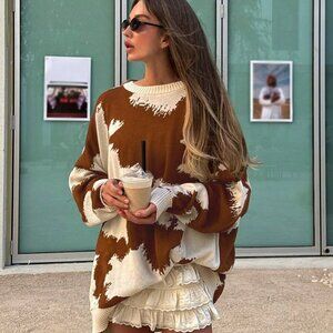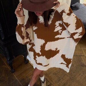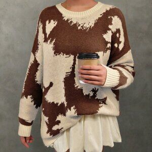 Multicolor Casual Women's Cow Print Western Cowboy Round Neck sweater top