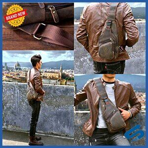 Leather Crossbody Sling Bag for Hiking Travel Casual Outdoor Sports Men's