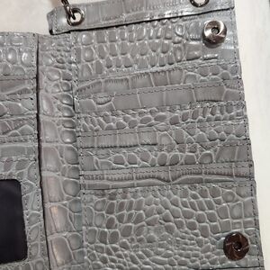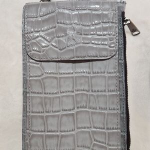 Excellent condition, new without tag, never used. Beautiful gray color, croc embossed leather pattern. Compact and practical to hold your phone, credit cards, cash, ID, etc.