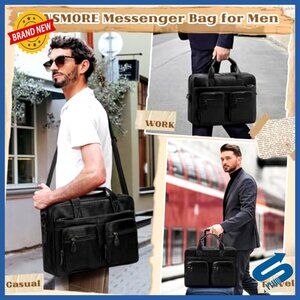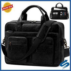 Vintage Messenger Bag PU Vegan Leather Laptop Briefcase Retro Travel Work