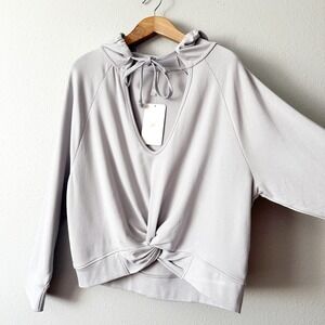 Fabletics Sydney Twist Front Cropped V Neck Casual Hoodie Light Gray Size XXL