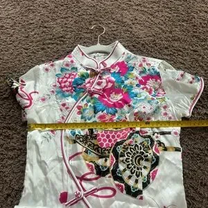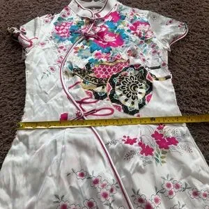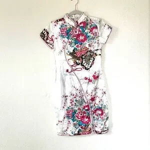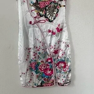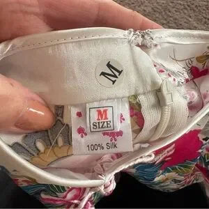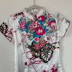 Asian Style TUNIC DRESS 100% Silk Fan Floral Pattern Made In Vietnam XS S M