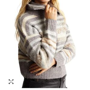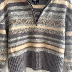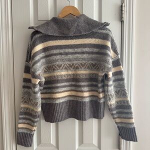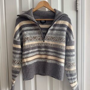 FRYE Fair Isle Striped Gray and Cream Women's Sweater