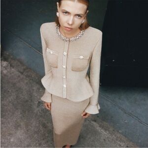 SOLD OUT! Self portrait GOLD CRYSTAL TRIM KNIT MIDI DRESS