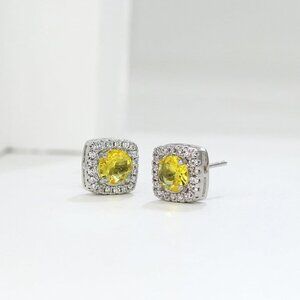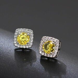 Women's Yellow Square Simulated Dainty Diamond Halo Sparkling Stud Earring