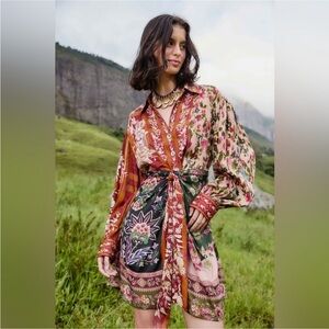 The waist tie gracefully defines curves, while the captivating mix of patterns adds a charming, artistic spirit to every step you take.