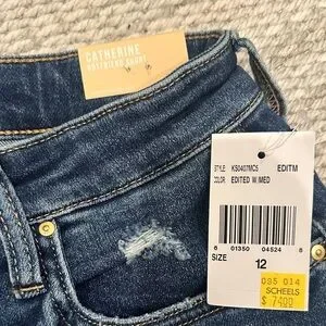 Stylish blue jean shorts. Features distressed details. Comfortable fit.
