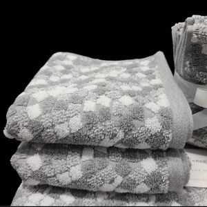 8pc ECO Melange Bath Hand Washcloth Towel Set Gray White Geo New
