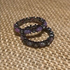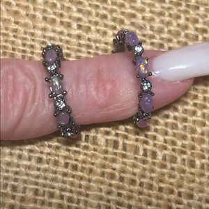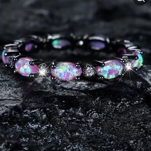 NWT. .925 Sterling Silver Black Band Ring Inlaid with Purple Opal gemstones - The Symbol Of Beauty & Gorgeousness - a sparkling CZ separates each stunning Opal. An exquisite layering ring as well as worn on its own.