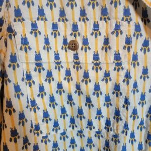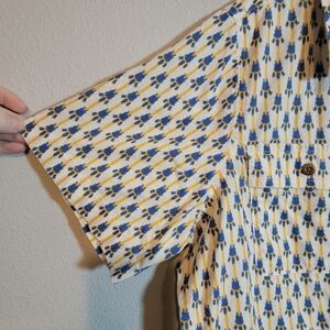 Features Full Buttom-up, Boxy Relaxed Fit, Shorleeves and Classic Blue and Yellow Pattern. Artisian Hemp and Organic Cotton Blend.