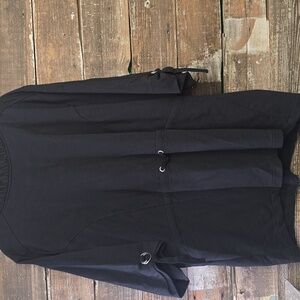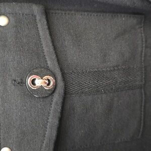 Stylish black zip-up jacket featuring button details and multiple pockets. Perfect for casual wear.