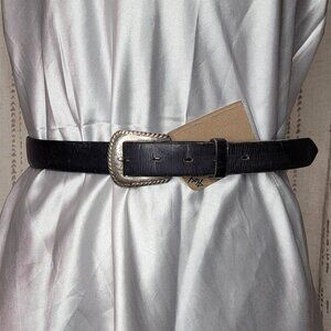 Thin Western Genuine Calfskin Silver Rope Trim Buckle Belt