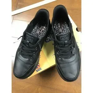 Skechers BOBS Hands Free Slip Ins Womens Black FaLeather Comfort Sneakers Sz 9