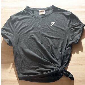 Gymshark Tie Front Cropped T-Shirt Black Short Sleeve Logo Tee Women’s XS