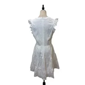 Laundry Shelli Segal White Eyelet Dress Flutter Sleeve Tiered Mini