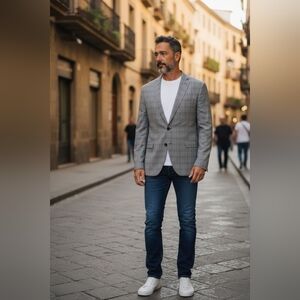 Elevate your style with this sleek gray blazer. Perfect for any occasion, this design offers a modern and sophisticated look.