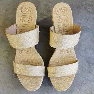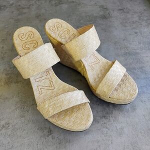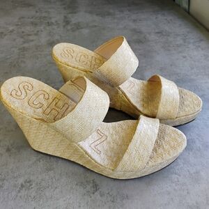 Schutz Tarla Platform Wedge Sandals Womens 8.5B Straw Basket Weave Tropical
