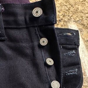 Dark indigo jeans with selvedge detailing. Ideal for everyday style.Straight fit with 4 button up fly.Size 33 , 501 tag inside.Excellent condition. Like new.Smoke free home