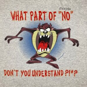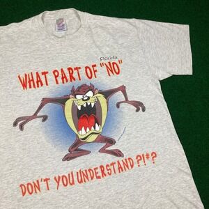 Vintage Looney Tunes Tasmanian Devil Shirt Mens L Gray 1996 What Part Of No 90s