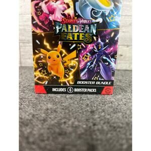 Pokémon Paldean Fates Booster Bundle – NEW, sealed six-pack box from the Scarlet & Violet series. Each bundle includes six factory-sealed booster packs packed with rare Pokémon, shiny cards, trainer cards, and other high-demand hits. The six pack boxes are SOLD INDIVIDUALLY—perfect for collectors, resellers, or players who want to open one bundle at a time. Stored safely in a smoke-free, pet-free home.