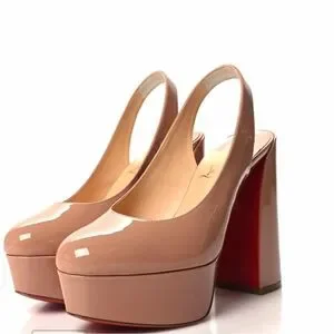 Chic nude slingback heels with signature red soles. Perfect for elevating any outfit.