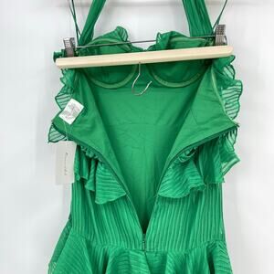 Line & Dot | NWT Cari Halter Maxi Dress in Kelly Green Tiered Pleated Halter XS