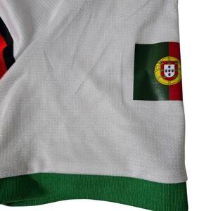 Sporty Kappa soccer-style jersey featuring classic Portugal-inspired colors and a Portugal flag emblem on the sleeve. This performance shirt has a lightweight athletic feel with stretch, making it ideal for casual wear, soccer fans, or streetwear styling.