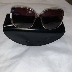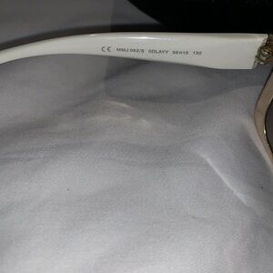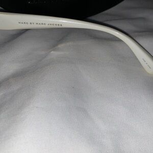Gently Loved Marc by Marc Jacobs MMJ082/S ladies Oversized Sunglasses In White & Gold. 0DLAYY - 59 15 - 130 - 8-10. Made in China. Includes black pleather demi-lune hard case. Some Minor Wear On Lenses, But Does Not Hinder The Wear or Look Of Glasses..