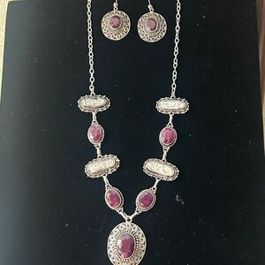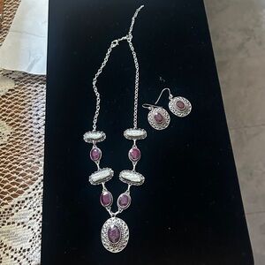 Vintage artisan crafted silver Ruby and natural pearl necklace and earring