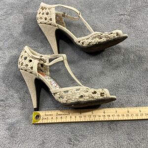 Womens Rocket Dog Tan Woven Peep Toe Heels T Strap Ankle Strap Size 6.5. Boho