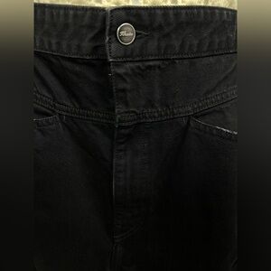 Khaite Preen Denim High Rise Wide Leg Denim Jeans in Black - Size 32 is famous for its ultra-flattering, elongated silhouette and premium rigid denim.
