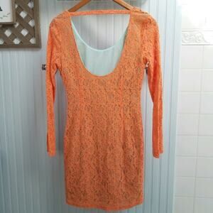 Excellent condition, Small orange lace long sleeve scoop back dressby Ark & Co. With side zipper