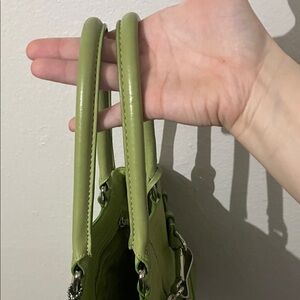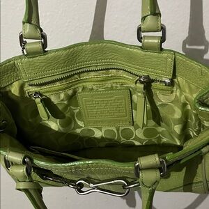Stylish green leather handbag perfect for any occasion. Features durable handles and a sleek design.
