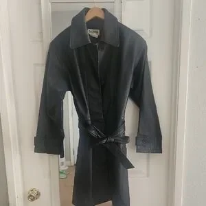 Bagatelle Vintage Black Leather Midi Trench Coat Belted Edgy 90s