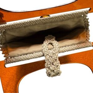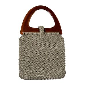 Vintage Handmade Macrame Bag with Bakelite Handles and Button