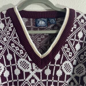 vintage Atlantic traders V-neck sweater men tennis racket on the lower band.