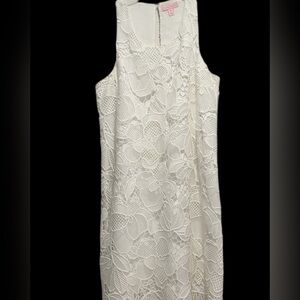 Lilly Pulitzer Marlissa Shift Resort White Jumbo Floral Scallop Lace Dress, SZ 2
