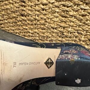 ANTONIO MELANI Black and Gold Floral Heels Antonio Melani