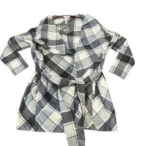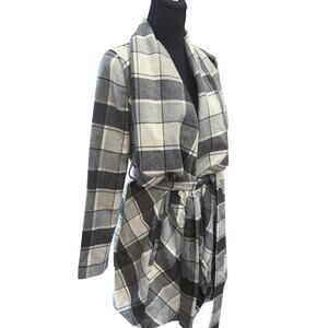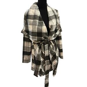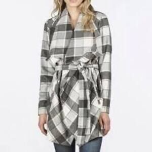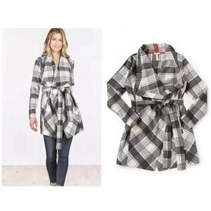 Elevate your wardrobe with this NWT Matilda Jane Check It Twice Jacket, a must-have layering piece that blends timeless style with premium comfort. Designed in classic black, grey, and white plaid, this structured yet cozy coat features a waterfall collar, wrap-front design, and adjustable tie belt for a flattering silhouette. The high-quality fabric blend ensures warmth without bulk, making it a versatile choice for fall and winter.