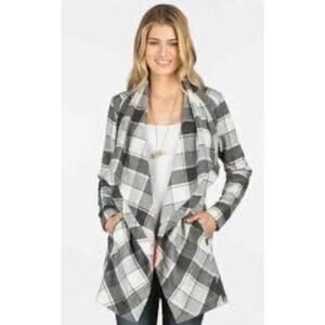 NWT Matilda Jane Womens XS Black Grey Plaid Check It Twice Jacket Sweater Coat