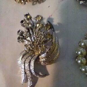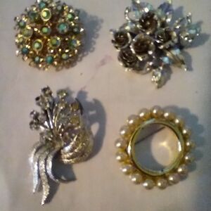This exquisite set of brooches features elegant designs in silver and gold tones. Perfect for adding a touch of sophistication to any outfit. The two flower brooches have loose pin sets.