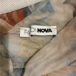 Fashion Nova Renaissance Print Mesh Bodysuit | Sheer Long Sleeve | Size M