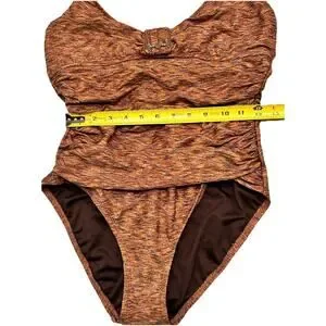 Anne Cole Bandeau Shirred 1PC Women's Swimsuit Shimmering Bronze Color Metallic Details - $112 MSRP