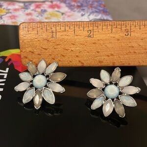 Lane Bryant Silver-tone Opal like Flower Earrings with hints of Blue (Pierced)