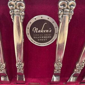 • Flatware: Excellent vintage condition. Minimal signs of use/faint surface scratches consistent with age. No "heeling" (wear through the plating) observed.