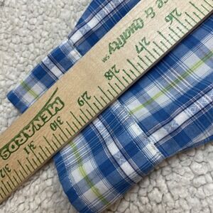 This Wrangler Men's Extra Large Blue Plaid Western Pearl Snap Long Sleeve Shirt is a vintage-inspired piece perfect for those who love a classic western style. Made of lightweight cotton fabric, this button-up shirt features a collared neckline with snap closures and a regular fit. The blue plaid pattern adds a touch of rodeo-inspired charm, making it suitable for all seasons and occasions. The shirt also boasts woven detailing, a point collar, and convenient pockets, making it a versatile and stylish addition to any man's wardrobe.