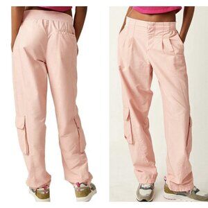 Free People FP Movement Mesmerize Me Cargo Pants in Sunkissed Pink Small Size elastic waist pleated oversized pockets