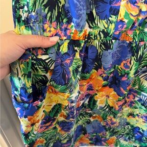 NWT Vibrant floral dress with cap sleeves and pockets! Zippered ruffle top