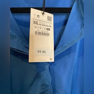 @funkymomala I just added some measurements. Chest is 23” from side to side, so 46” around. Length is 49” from shoulder to bottom hem. It is polyester fabrication.