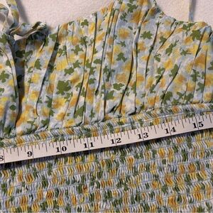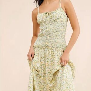 New without tags. Effortlessly femme, this midi dress is featured in a soft cotton fabrication and sleeveless silhouette with flattering drop-waist detailing and a smocked bodice. **Fit:** Fit-and-flare style, midi-length **Features:** Soft cotton fabrication, subtle scoop neckline, tie at bust, smocked bodice, drop-waist detailing, thin adjustable shoulder straps *